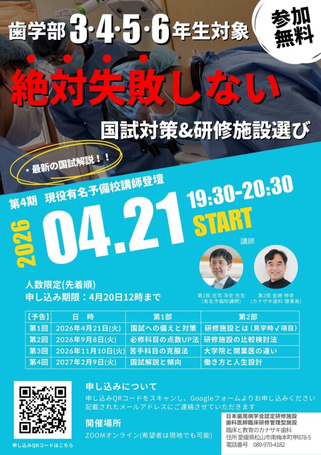 【歯学部3・4・5・6年生対象】絶対失敗しない国試対策&研修施設選び(参加無料)