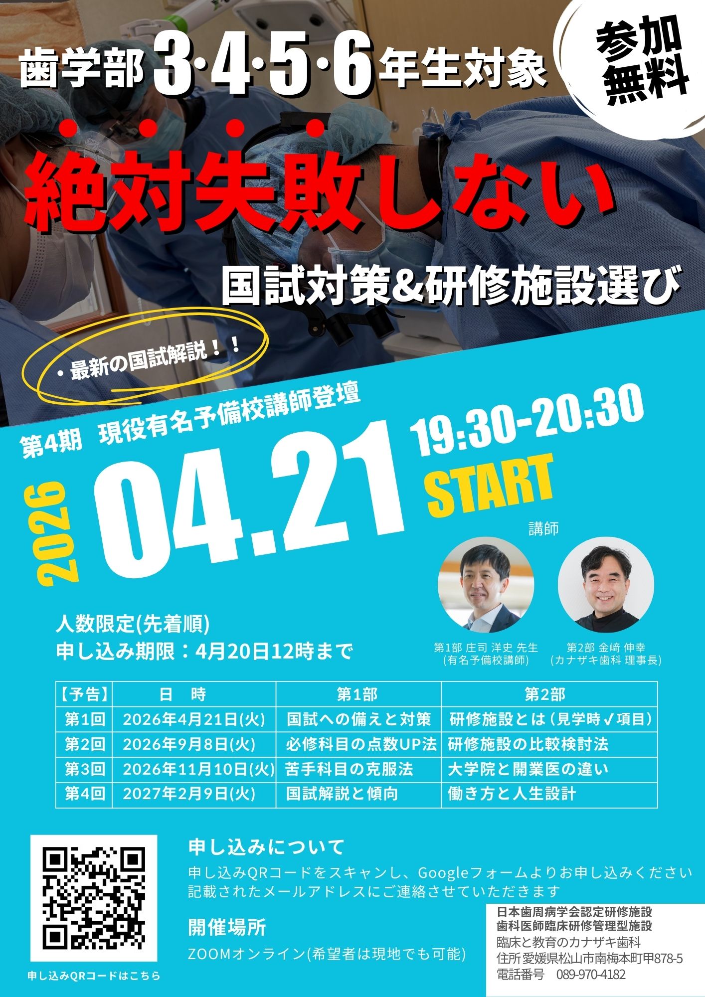 大人気のセミナー「絶対失敗しない国試対策&研修施設選び」もついに第4期、今年は歯学部3・4・5・6年生を対象に実施されます。