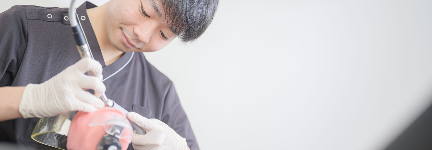 大学3年生のときに金崎院長先生の著書を読み、カナザキ歯科を知りました。見学の際に院長先生から直接ユニットに案内され、院長先生とのマンツーマンでの模型実習を体験したことが決め手となり、カナザキ歯科での研修を選びました。他にもいくつか全国の歯科医院を見学していましたが院長先生とここまで密に直接指導していただける実習は他では見られないもので、そういった教育環境が非常に魅力的でした。